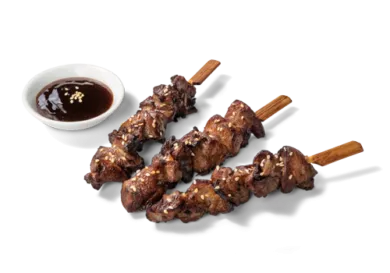 Inhalt: 3x Yakitori-Hähnchenspieße, aufgetaut, in Teriyakisauce mariniert.